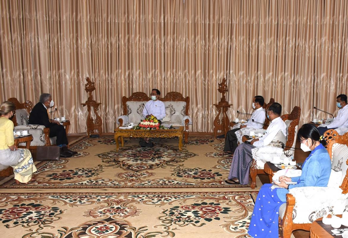 ပြည်ထောင်စုဝန်ကြီး ဦးဝဏ္ဏမောင်လွင် ဗန်ကောက်မြို့အခြေစိုက် ကုလသမဂ္ဂ စီမံကိန်းဝန်ဆောင်မှုရုံး၏ အာရှဒေသဆိုင်ရာ ညွှန်ကြားရေးမှူး မစ္စတာ ဆန်ဂျေးမာသာ ကို လက်ခံတွေ့ဆုံ