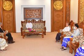 ပြည်ထောင်စုဝန်ကြီး ဒေါက်တာသက်ခိုင်ဝင်း ဘန်ကောက်မြို့ အခြေစိုက် ကုလသမဂ္ဂ စီမံကိန်း ဝန်ဆောင်မှုရုံး၏ အာရှဒေသဆိုင်ရာ ညွှန်ကြားရေးမှူး ဦးဆောင်သောအဖွဲ့အား လက်ခံတွေ့ဆုံ