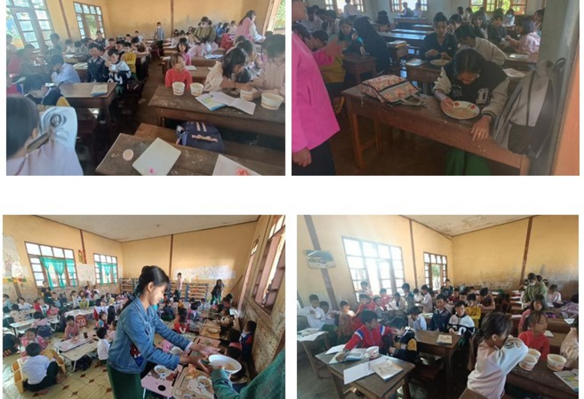 နောင်မွန်နယ်မြေရဲစခန်းရှိ တပ်ဖွဲ့ဝင် မိသားစုများမှ ဆရာ၊ ဆရာမနှင့် ကျောင်းသား၊ ကျောင်းသူများကို အာဟာရကျွေးမွေးလှူဒါန်း