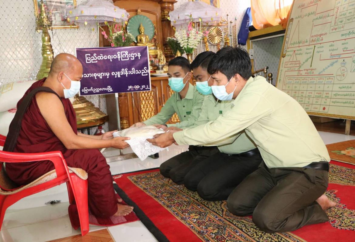 ပြည်ထဲရေးဝန်ကြီးဌာန မိသားစုများက ဆွမ်းဆန်တော်နှင့် ဆန်ကြာဆံများ ဆက်ကပ်လှူဒါန်း