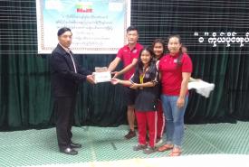 အသက်(၁၈)နှစ်အောက် အမျိုးသမီးဘောလုံးပြိုင်ပွဲ တတိယဆုရ "ဝ"ကိုယ်ပိုင်အုပ်ချုပ်ခွင့်ရ တိုင်း အမျိုးသမီးဘောလုံးအသင်းကို ကြိုဆိုဂုဏ်ပြု