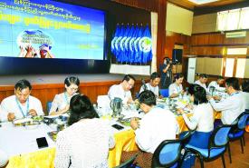ပြည်ထောင်စုဝန်ကြီး ဦးမောင်မောင်အုန်း ပြန်ကြားရေးနှင့်ပြည်သူ့ဆက်ဆံရေးဦးစီးဌာနမှ ဝန်ထမ်းများနှင့်အတူ နေ့လယ်စာသုံးဆောင်