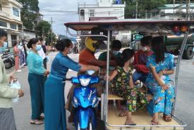 ကော့သောင်းမြို့တွင် လမ်းထွက်သွားလာနေကြသူများအား မဖြစ်မနေ နှာခေါင်းစည်းတပ်ဆင်ကြရေး နှိုးဆော်ဆောင်ရွက်