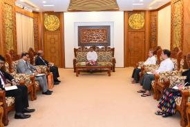 ပြည်ထောင်စုသမ္မတ မြန်မာနိုင်ငံတော် ယာယီသမ္မတ နိုင်ငံတော်လုံခြုံရေးနှင့် အေးချမ်းသာယာရေး ကော်မရှင်ဥက္ကဋ္ဌ ဗိုလ်ချုပ်မှူးကြီးမင်းအောင်လှိုင်ထံ ရုရှားဖက်ဒရေးရှင်းနိုင်ငံ ဒူးမားလွှတ်တော် ဒုတိယဥက္ကဋ္ဌ ဦးဆောင်သည့် ကိုယ်စားလှယ်အဖွဲ့က လာရောက်ဂါရဝပြုတွေ့ဆုံ