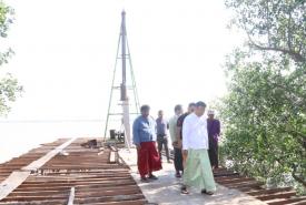 ဒုတိယဝန်ကြီး ဦးဇော်အေးမောင် ပြည်ထောင်စုတိုင်းရင်းသားကျေးရွာ (ရန်ကုန်) ဆိပ်ခံဗောတံတားတည် ဆောက်ရေးလုပ်ငန်းခွင် ကြည့်ရှုစစ်ဆေး