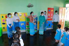 ပြည်ထောင်စုဝန်ကြီး ဒေါက်တာသက်သက်ခိုင် ကရင်ပြည်နယ်၊ ဘားအံမြို့ရှိ ဦးစီးဌာနရုံးများ၊ မူလတန်းကြိုကျောင်းများ လှည့်လည်ကြည့်ရှု အားပေး