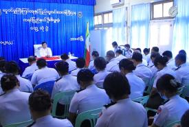 ပြည်ထောင်စုဝန်ကြီး ဦးမြင့်ကြိုင် ဘားအံမြို့၌ ပြည်နယ်/ ခရိုင်/ မြို့နယ်ဦးစီးမှူးရုံးများမှ ဝန်ထမ်းများအား တွေ့ဆုံ၊ နိုင်ငံနှင့် ပြည်သူအတွက် ထိရောက်သော ဝန်ဆောင်မှုများ ပေးနိုင်ရေး ကြိုးပမ်းဆောင်ရွက်ကြရန် မှာကြား၍ ထောက်ပံ့ငွေများ ပေးအပ်
