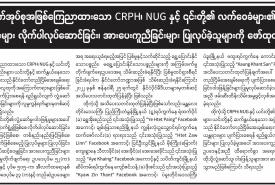 အကြမ်းဖက်အုပ်စုအဖြစ်ကြေညာထားသော CRPH ၊ NUG တို့နှင့် ၎င်းတို့၏ လက်ဝေခံများ၏ လှုံ့ဆော်၊ ဝါဒဖြန့်ခြင်းများ လိုက်ပါလုပ်ဆောင်ခြင်း၊ အားပေးကူညီခြင်းများ ပြုလုပ်ခဲ့သူများကို ဖော်ထုတ်အရေးယူ