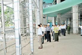 ပြည်ထောင်စုသမ္မတမြန်မာနိုင်ငံတော်ယာယီသမ္မတနိုင်ငံတော်လုံခြုံရေးနှင့်အေးချမ်းသာယာရေးကော်မရှင်ဥက္ကဋ္ဌ ဗိုလ်ချုပ်မှူးကြီးမင်းအောင်လှိုင် ပြင်ဦးလွင်ဘူတာကြီးနှင့် သုမင်္ဂလာဈေး(ညံတောဈေး) ခြောက်ထပ်အဆင့်မြင့်ဈေးသစ် တည်ဆောက်ရေးစီမံကိန်းသို့ သွားရောက်ကြည့်ရှုစစ်ဆေး