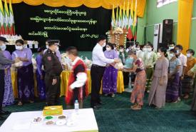 ဝါးခယ်မမြို့နယ်အတွင်းသို့ ယာယီရွှေ့ပြောင်းနေထိုင်သူ ပြည်သူများအား သုံးလစာ ထောက်ပံ့ငွေနှင့် ပစ္စည်းများပေးအပ်