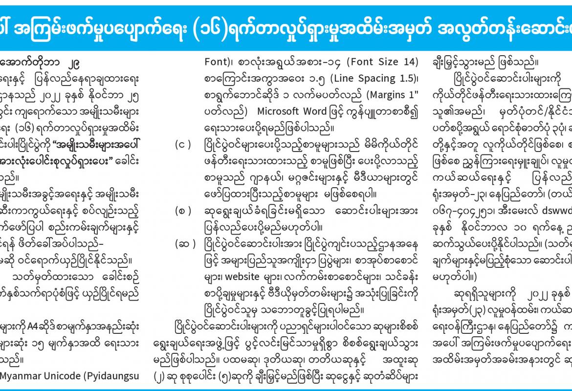 အမျိုးသမီးများအပေါ် အကြမ်းဖက်မှုပပျောက်ရေး (၁၆)ရက်တာလှုပ်ရှားမှုအထိမ်းအမှတ် အလွတ်တန်းဆောင်းပါးပြိုင်ပွဲဖိတ်ခေါ်ခြင်း