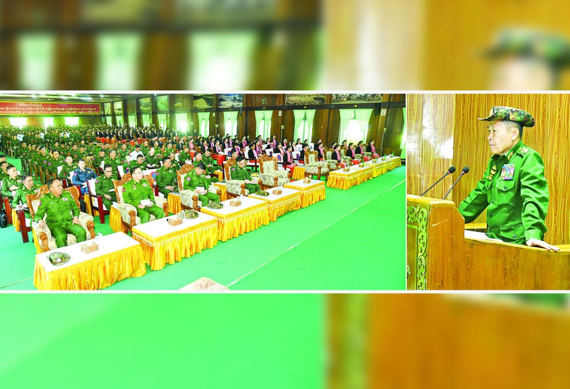 နိုင်ငံတော်လုံခြုံရေးနှင့် အေးချမ်းသာယာရေးကော်မရှင် ဒုတိယဥက္ကဋ္ဌ ဒုတိယတပ်မတော်ကာကွယ်ရေးဦးစီးချုပ် ကာကွယ်ရေးဦးစီးချုပ် (ကြည်း) ဒုတိယဗိုလ်ချုပ်မှူးကြီး စိုးဝင်း မြစ်ကြီးနားတပ်နယ်မှ အရာရှိ၊ စစ်သည်၊ မိသားစုဝင်များအား တွေ့ဆုံအမှာစကားပြောကြား