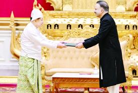 ပြည်ထောင်စုသမ္မတမြန်မာနိုင်ငံတော် ယာယီသမ္မတ နိုင်ငံတော်လုံခြုံရေးနှင့် အေးချမ်းသာယာရေးကော်မရှင် ဥက္ကဋ္ဌ ဗိုလ်ချုပ်မှူးကြီး မင်းအောင်လှိုင်ထံ မြန်မာနိုင်ငံဆိုင်ရာ ပါကစ္စတန်နိုင်ငံသံအမတ်ကြီးက သံအမတ်ခန့်အပ်လွှာပေးအပ်