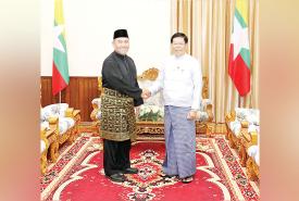 ပြည်ထောင်စုဝန်ကြီး ဦးသန်းဆွေ မြန်မာနိုင်ငံဆိုင်ရာ ဘရူနိုင်းသံအမတ်ကြီးအား လက်ခံတွေ့ဆုံ