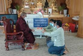 ပြည်ထဲရေးဝန်ကြီးဌာန မိသားစုများက ဆွမ်းဆန်တော်နှင့် ဆန်ကြာဆံများ  ဆက်ကပ်လှူဒါန်း