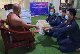 ပြည်ထဲရေးဝန်ကြီးဌာန မိသားစုများက ဆွမ်းဆန်တော်နှင့် ဆန်ကြာဆံများ ဆက်ကပ်လှူဒါန်း