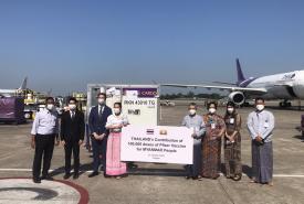 ထိုင်းနိုင်ငံမှ မြန်မာနိုင်ငံသို့ မြန်မာနိုင်ငံ ကြက်ခြေနီအသင်းမှတဆင့် လှူဒါန်းသည့် ကလေးများတွင် ထိုးနှံနိုင်သည့် ကိုဗစ်-၁၉ ရောဂါကာကွယ်ဆေး Pfizer Vaccine (၁၀၀,၀၀၀) doses နှင့် ဆေးထိုး အပ်များရောက်ရှိ
