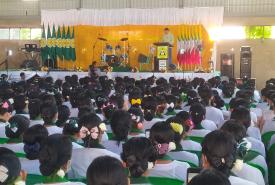 ဧရာဝတီတိုင်းဒေသကြီး၊ ဖျာပုံခရိုင်၊ ဘိုကလေးမြို့နယ်၊ ဘိုကလေးပညာရေးဒီဂရီကောလိပ်ရှိ အားကစားခန်းမတွင် အောက်တိုဘာ ၁၉ ရက် နံနက်ပိုင်းက လုပ်ငန်းခွင်အကြို မူလတန်းဆရာအတတ် ပညာသင်တန်း (၈/၂၂) ဆင်းပွဲ ကျင်းပရာ ..............