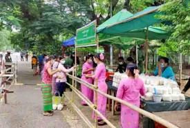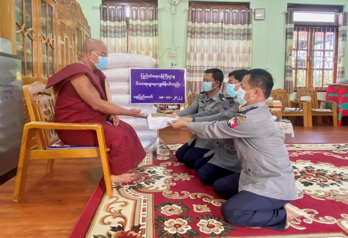 ပြည်ထဲရေးဝန်ကြီးဌာန၊ တပ်ဖွဲ့ဝင်/ဝန်ထမ်း အရာထမ်း၊ အမှုထမ်းမိသားစုများက မြို့နယ်အသီးသီးရှိ ဘုန်းတော်ကြီးကျောင်းများသို့ ဆွမ်းဆန်တော်နှင့် ဆန်ကြာဆံများ ဆက်ကပ်လှူဒါန်းလျက်ရှိသည်။