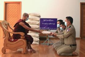 ပြည်ထဲရေးဝန်ကြီးဌာန မိသားစုများက ဆွမ်းဆန်တော်နှင့် ဆန်ကြာဆံများ ဆက်ကပ်လှူဒါန်း