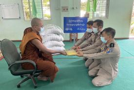 ပြည်ထဲရေးဝန်ကြီးဌာန မိသားစုများက ဆွမ်းဆန်တော်နှင့် ဆန်ကြာဆံများ ဆက်ကပ်လှူဒါန်း