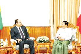 ပြည်ထောင်စုဝန်ကြီး ဦးသန်းဆွေ ကာတာနိုင်ငံ ဒုတိယဝန်ကြီးချုပ်နှင့် ကာကွယ်ရေးဝန်ကြီးဟောင်း ဦးဆောင်သော ကိုယ်စားလှယ်အဖွဲ့အား လက်ခံတွေ့ဆုံ