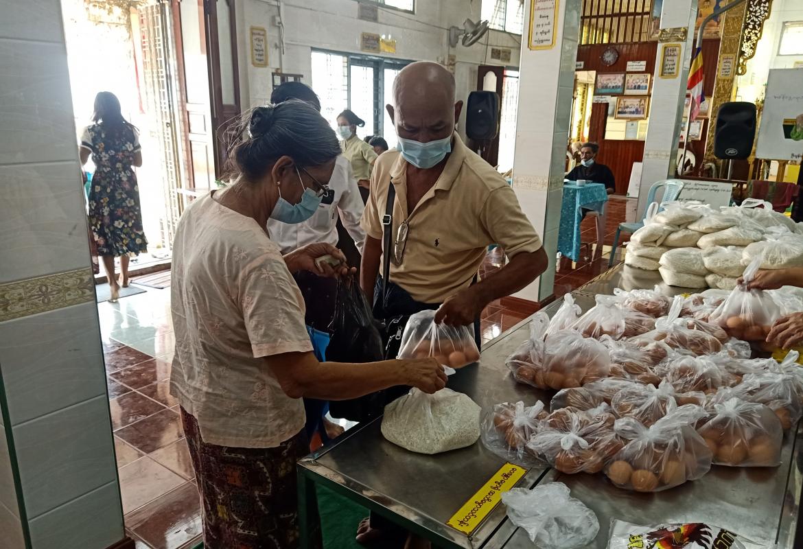 တောင်ဥက္ကလာပမြို့နယ်၊ အမှတ်(၃)ရပ်ကွက်တွင် ဆန်၊ ဆီ၊ ကြက်ဥများအား သက်သာသောဈေးနှုန်းဖြင့် ရောင်းချပေးလျက်ရှိ
