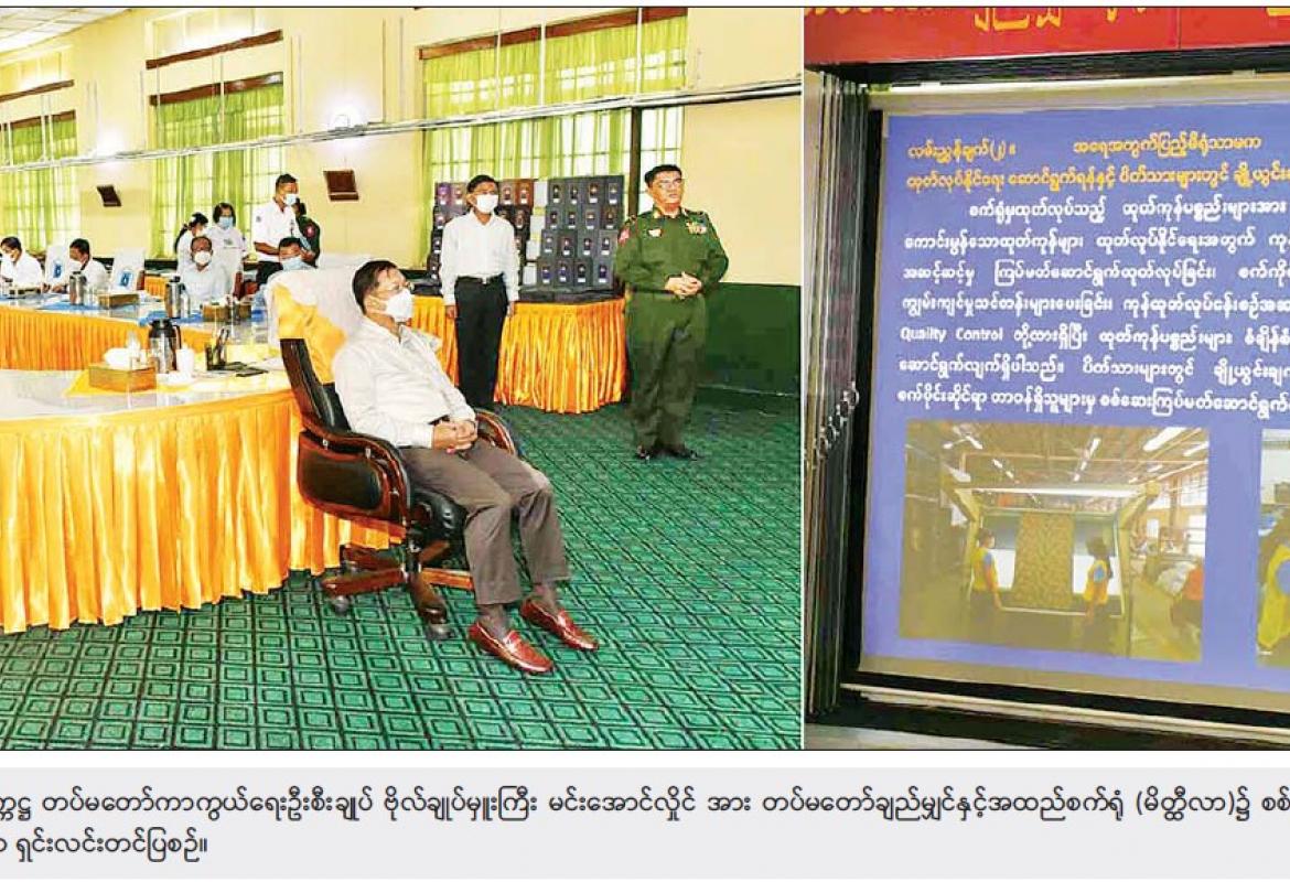 နိုင်ငံတော်စီမံအုပ်ချုပ်ရေးကောင်စီဥက္ကဋ္ဌ တပ်မတော်ကာကွယ်ရေးဦးစီးချုပ် ဗိုလ်ချုပ်မှူးကြီး မင်းအောင်လှိုင် တပ်မတော်ချည်မျှင်နှင့်အထည်စက်ရုံ (မိတ္ထီလာ)သို့ သွားရောက်ကြည့်ရှုစစ်ဆေး