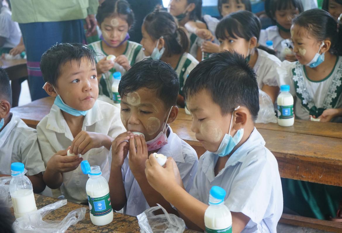 နွားနို့သောက်သုံးသည့် အလေ့အကျင့်ကောင်းများ ရရှိစေရေး အခြေခံပညာကျောင်းများ၌ နို့တိုက်ကျွေး