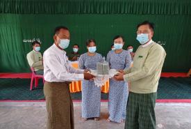 ဝါးခယ်မမြို့နယ်အတွင်းသို့ ယာယီရွှေ့ပြောင်းနေထိုင်သူ ပြည်သူများအား သုံးလစာ ထောက်ပံ့ငွေနှင့် ပစ္စည်းများပေးအပ်