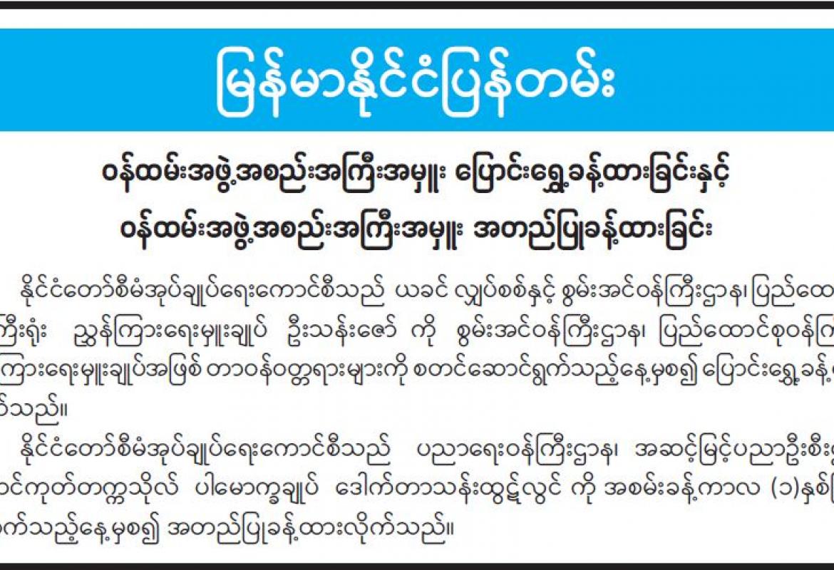 ဝန်ထမ်းအဖွဲ့အစည်းအကြီးအမှူး ပြောင်းရွှေ့ခန့်ထားခြင်းနှင့် ဝန်ထမ်းအဖွဲ့အစည်းအကြီးအမှူး အတည်ပြုခန့်ထားခြင်း