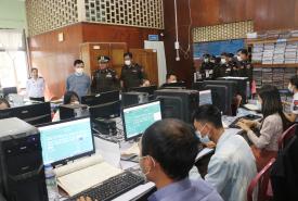 လူဝင်မှုကြီးကြပ်ရေးနှင့် ပြည်သူ့အင်အားဝန်ကြီးဌာန ပြည်ထောင်စုဝန်ကြီး ဦးမြင့်ကြိုင် သည် အမျိုးသားမှတ်ပုံတင်နှင့် နိုင်ငံသားဦးစီးဌာန ညွှန်ကြားရေးမှူးချုပ် ဦးထိန်ဝင်း နှင့် တာဝန် ရှိသူများနှင့်အတူ