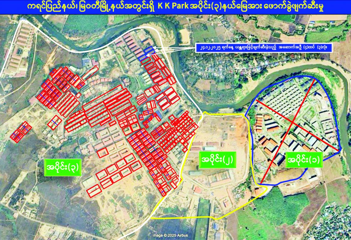 KK Park နယ်မြေအတွင်း အွန်လိုင်းလိမ်လည်လောင်းကစားမှု ကျူးလွန်ရာတွင် အသုံးပြုသည့် တရားမဝင်အဆောက်အအုံ ၄၉၄ လုံးကို စနစ်တကျဖြိုချဖျက်ဆီးပြီးစီး