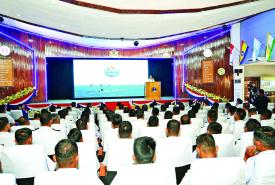 နိုင်ငံတော်လုံခြုံရေးနှင့် အေးချမ်းသာယာရေးကော်မရှင်ဥက္ကဋ္ဌ တပ်မတော်ကာကွယ်ရေးဦးစီးချုပ် ဗိုလ်ချုပ်မှူးကြီး မင်းအောင်လှိုင် တပ်မတော်(ရေ)ဖွဲ့စည်းတည်ထောင်မှု(၇၈)နှစ်မြောက်နှစ်ပတ်လည်နေ့ အခမ်းအနားသို့ တက်ရောက်ချီးမြှင့်