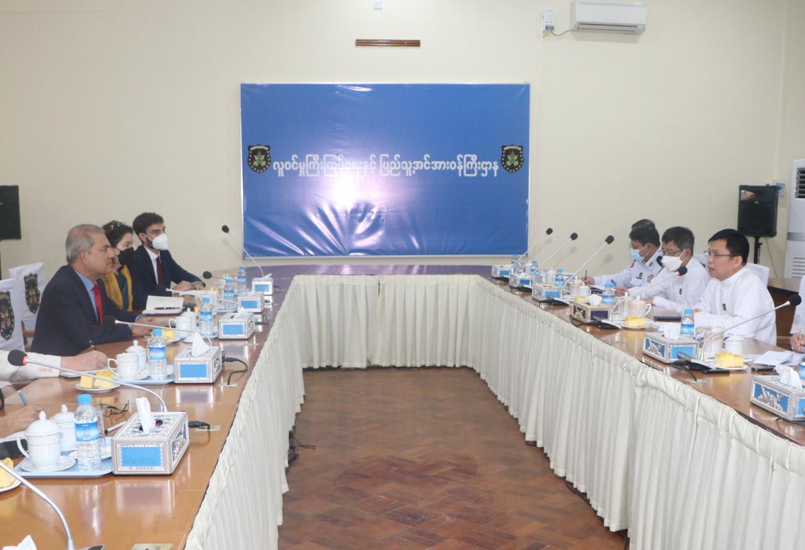 ပြည်ထောင်စုဝန်ကြီး ဦးမြင့်ကြိုင် ကုလသမဂ္ဂဒုက္ခသည်များဆိုင်ရာ မဟာမင်းကြီးရုံး (UNHCR) ၏ အာရှ-ပစိဖိတ် ဒေသဆိုင်ရာ ဗျူရိုညွှန်ကြားရေးမှူး Mr.Indrika Ratwatte နှင့်အဖွဲ့အား လက်ခံတွေ့ဆုံ