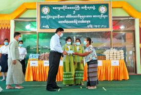 ဝါးခယ်မမြို့နယ်အတွင်းသို့ ယာယီရွှေ့ပြောင်းနေထိုင်သူ ပြည်သူများအား သုံးလစာ ထောက်ပံ့ငွေနှင့် ပစ္စည်းများပေးအပ်