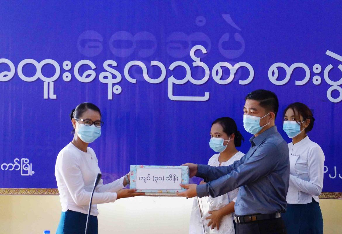 ဝါးခယ်မမြို့နယ်အတွင်းသို့ ယာယီရွှေ့ပြောင်းနေထိုင်သူ ပြည်သူများအား သုံးလစာ ထောက်ပံ့ငွေနှင့် ပစ္စည်းများပေးအပ်