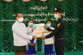 ဝါးခယ်မမြို့နယ်အတွင်းသို့ ယာယီရွှေ့ပြောင်းနေထိုင်သူ ပြည်သူများအား သုံးလစာ ထောက်ပံ့ငွေနှင့် ပစ္စည်းများပေးအပ်