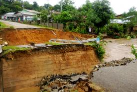 မိုင်းဆတ်မြို့၌ မိုးသည်းထန်စွာရွာသွန်းမှုကြောင့် ဟိုနားကျေးရွာရှိ ကွန်ကရစ်တံတားပျက်စီး