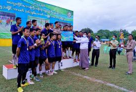 မကွေးတိုင်းဒေသကြီးဝန်ကြီးချုပ် ဦးတင့်လွင် တိုင်းဒေသကြီးဝန်ကြီးချုပ်ဖလား (၅)ခရိုင် အသက်(၁၆) နှစ်အောက် အမျိုးသားဘောလုံးပြိုင်ပွဲ ဆုပေးပွဲအခမ်းအနားတက်ရောက်