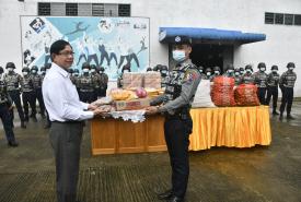 ရန်ကုန်တိုင်းဒေသကြီးအစိုးရအဖွဲ့မှ လုံခြုံရေးတာဝန်ထမ်းဆောင်နေသော ရဲတပ်ဖွဲ့ဝင်များအား အခြေခံ စားသောက်ကုန်များ ထောက်ပံ့