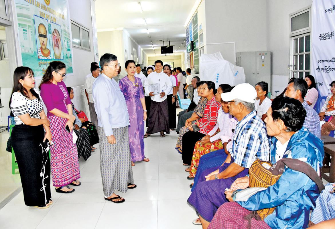 ပြည်ထောင်စုဝန်ကြီး ဦးတင်ဦးလွင် မျက်စိစမ်းသပ် ခွဲစိတ်ကုသမှု ခံယူလျက်ရှိသည့် လူနာများအား ကြည့်ရှုအားပေးပြီး အလှူငွေများ ပေးအပ်လှူဒါန်း