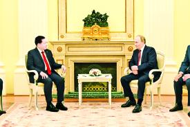 ပြည်ထောင်စုသမ္မတမြန်မာနိုင်ငံတော် ယာယီသမ္မတ နိုင်ငံတော်လုံခြုံရေးနှင့် အေးချမ်းသာယာရေး ကော်မရှင်ဥက္ကဋ္ဌ ဗိုလ်ချုပ်မှူးကြီး မင်းအောင်လှိုင် ရုရှားဖက်ဒရေးရှင်းနိုင်ငံသမ္မတ H.E. Vladimir Vladimirovich Putin နှင့် တွေ့ဆုံဆွေးနွေး