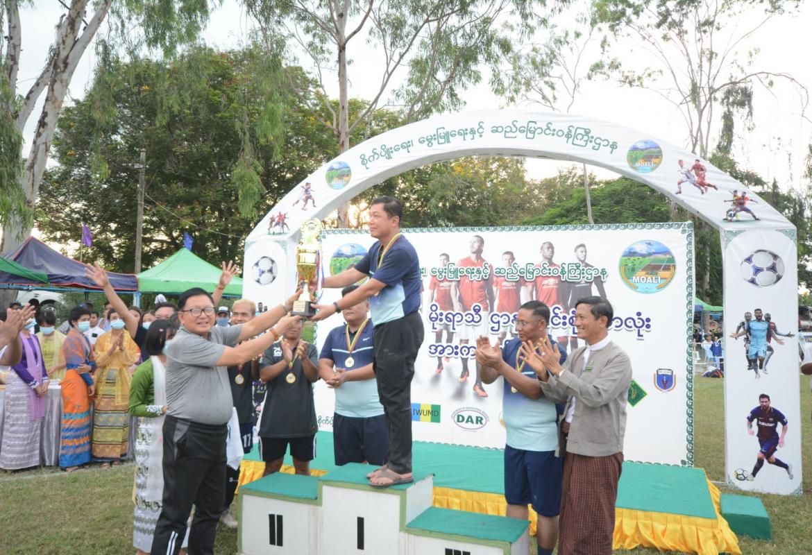 ဒုတိယဝန်ကြီး ဒေါက်တာအောင်ကြီး မိုးရာသီဌာနပေါင်းစုံ အမျိုးသားဘောလုံးအားကစားပြိုင်ပွဲ ဆုပေးပွဲအခမ်းအနားသို့ တက်ရောက်အားပေး