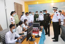 ပြည်ထောင်စုဝန်ကြီး ဦးခင်ရီ ပဲခူးမြို့၌ မဲစာရင်းမှန်ကန်ရေးအတွက် စိစစ်ဆောင်ရွက်ရန် လိုအပ်သည့် အိမ်ထောင်စုလူဦးရေ စာရင်းပုံစံ (၆၆/၆)ပါ အချက်အလက်များအား ကွန်ပျူတာ များဖြင့် ဖြည့်သွင်းဆောင်ရွက်နေမှု ကြည့်ရှုစစ်ဆေး