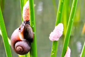 မိုးရာသီစပါးစိုက်ချိန်၌ ရွှေခရုများကြောင့် စပါးပင်များ ပျက်စီး
