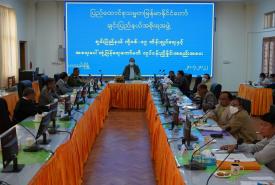 ချင်းပြည်နယ်ဝန်ကြီးချုပ် ဦးငွန်ဆန်းအောင် ချင်းပြည်နယ်ကိုဗစ်−၁၉ ထိန်းချုပ်ရေးနှင့် အရေးပေါ်တုံ့ပြန်ရေးကော်မတီ လုပ်ငန်းညှိနှိုင်း အစည်းအဝေး တက်ရောက်
