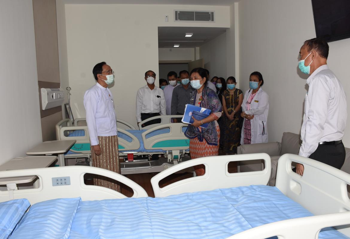 ကျန်းမာရေးဝန်ကြီးဌာန ပြည်ထောင်စုဝန်ကြီး ဒေါက်တာသက်ခိုင်ဝင်းသည် ကျန်းမာရေးဝန်ကြီး ဌာနမှ တာဝန်ရှိသူများလိုက်ပါလျက် ဇူလိုင် (၁၈)ရက် နံနက်ပိုင်းတွင်