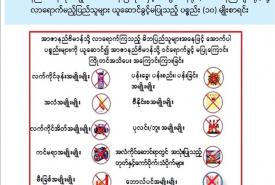 အာဇာနည်ဗိမာန်၊ ဗိုလ်ချုပ်အောင်ဆန်းပြတိုက်နှင့် အတွင်းဝန်ရုံး (ယခင်ဝန်ကြီးများရုံး)သို့ လာရောက်မည့်ပြည်သူများ ယူဆောင်ခွင့်မပြုသည့် ပစ္စည်း(၁၀)မျိုးစာရင်း