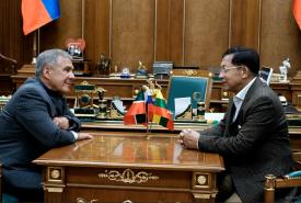 ပြည်ထောင်စုသမ္မတ မြန်မာနိုင်ငံတော် ယာယီသမ္မတ နိုင်ငံတော်လုံခြုံရေးနှင့် အေးချမ်းသာယာရေး ကော်မရှင်ဥက္ကဋ္ဌ ဗိုလ်ချုပ်မှူးကြီးမင်းအောင်လှိုင်ထံ ရုရှားဖက်ဒရေးရှင်းနိုင်ငံ ဒူးမားလွှတ်တော် ဒုတိယဥက္ကဋ္ဌ ဦးဆောင်သည့် ကိုယ်စားလှယ်အဖွဲ့က လာရောက်ဂါရဝပြုတွေ့ဆုံ